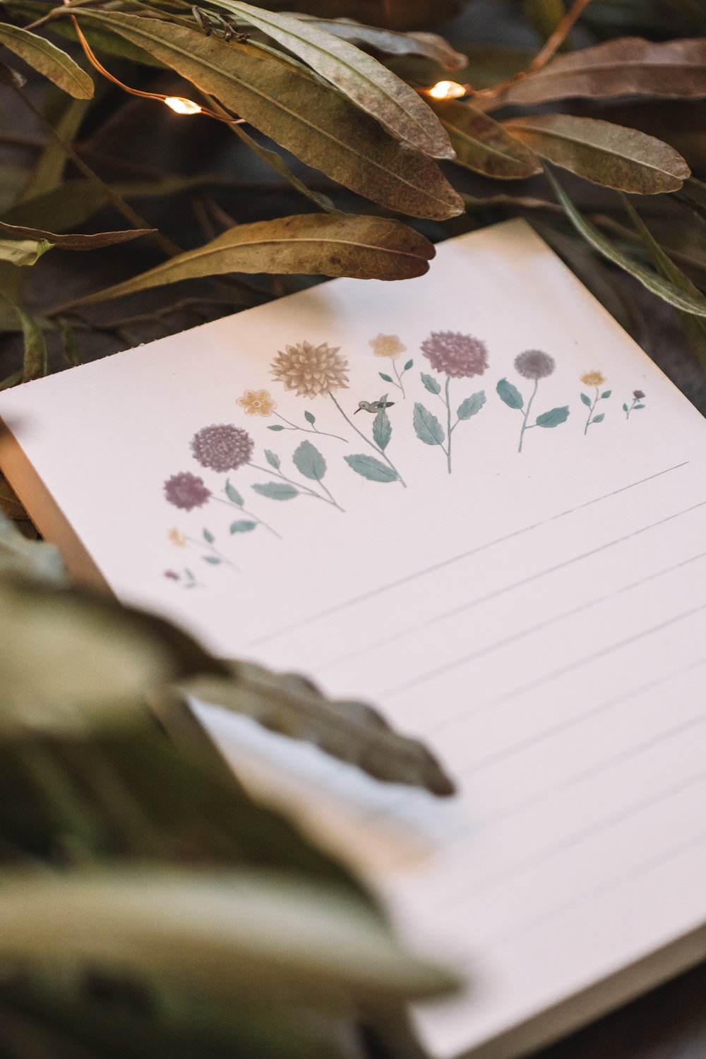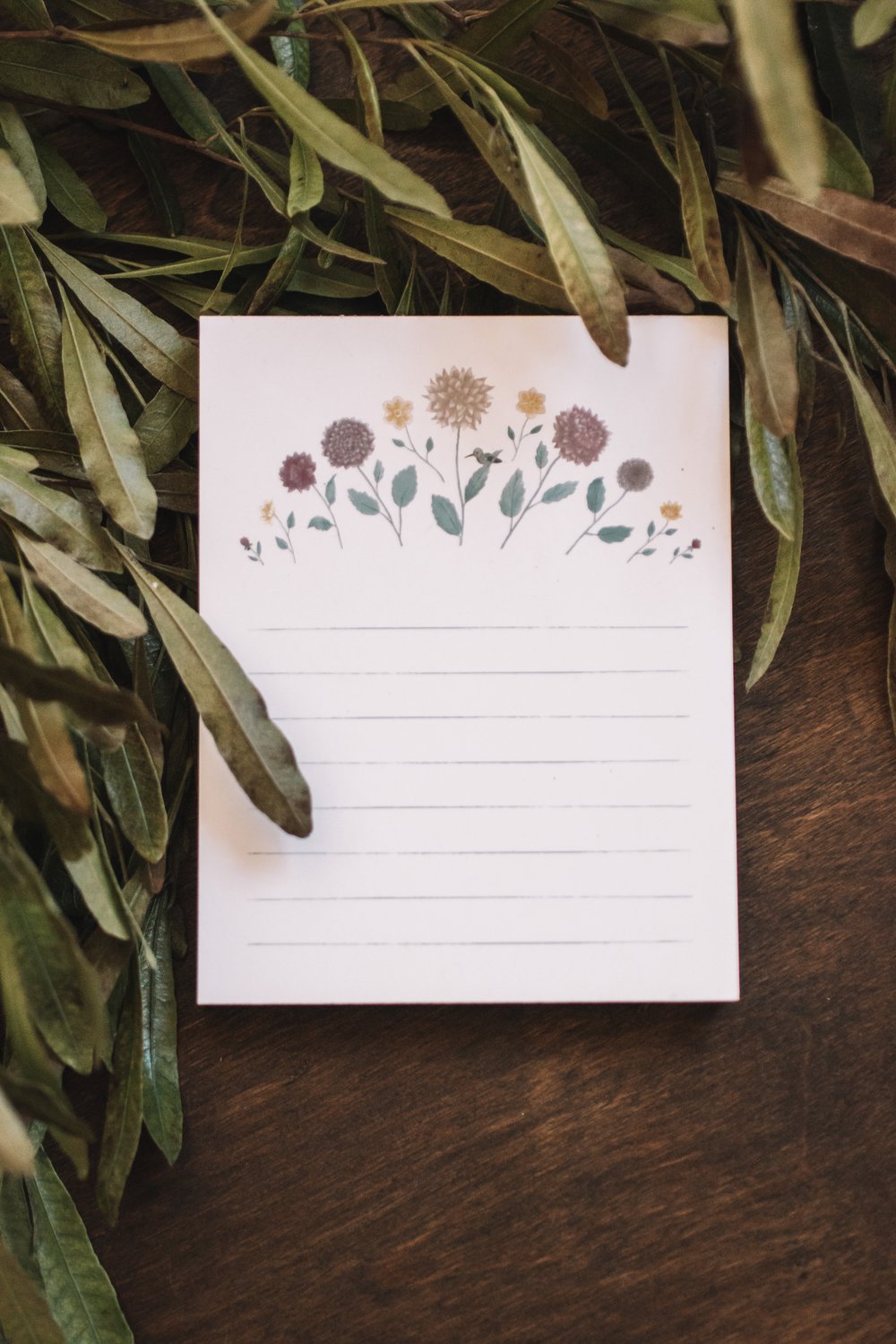 This lovely notepad features beautiful Dahlias and a sweet little hummingbird
